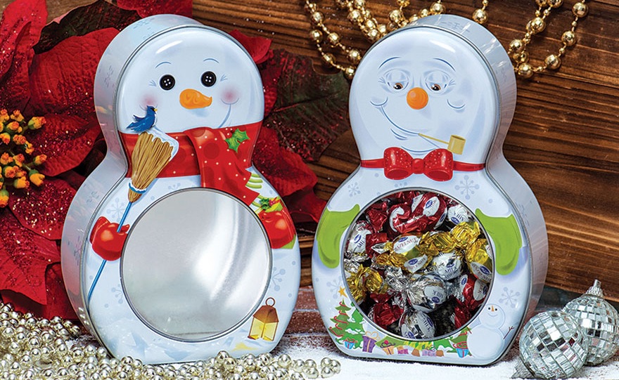 Most of our Seasonal Tins are more creative and unique in shape and concept. Here we have many shapes and window tins as well as tins with wheels. We also have specialty tins for confections and lock and seal tins for cookies and baked treats for the holidays. We keep stock of all seasonal tins in both the US and China distribution centers for sales worldwide.